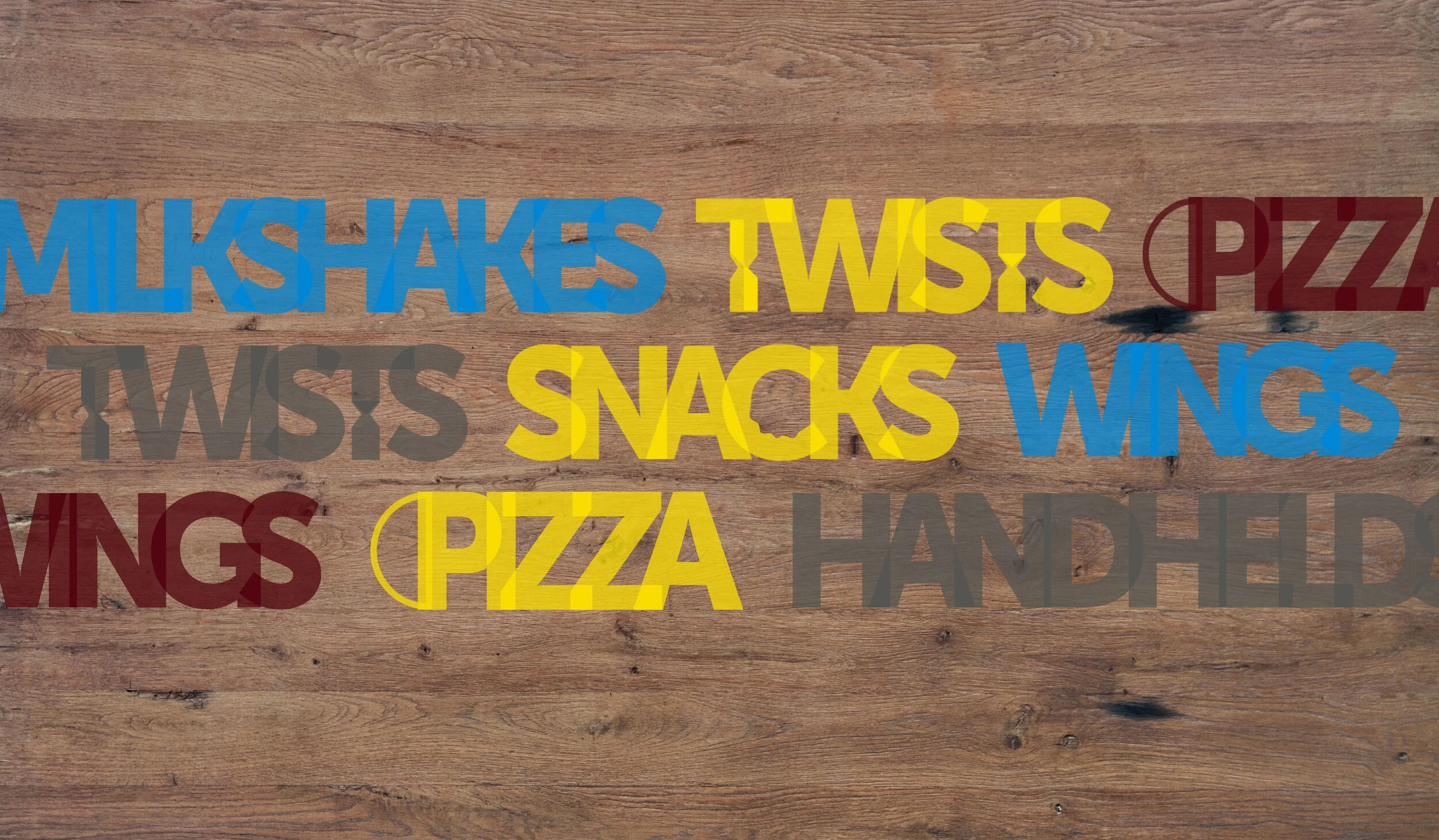 It designed a simple logo for The Works Kitchen, and immediately felt that while it met the sophistication of the chef’s culinary confections, it failed to marry a new brand to the excitement, the the irreverence, and the youth of the GameWorks brand. So I built a visual plan around the logo I had designed. By allowing the logo to be partially covered with food images, I placed the product in the forefront and gave visuals more layers. I then added tightly kerned typography to the mix which was used on the new menu and on visual content. Using a combination of gorgeously shot imagery, the bright colors of the overlapped text, and the multiple layers of all visuals, we accomplished the goal of marrying The Works Kitchen to the GameWorks brand.